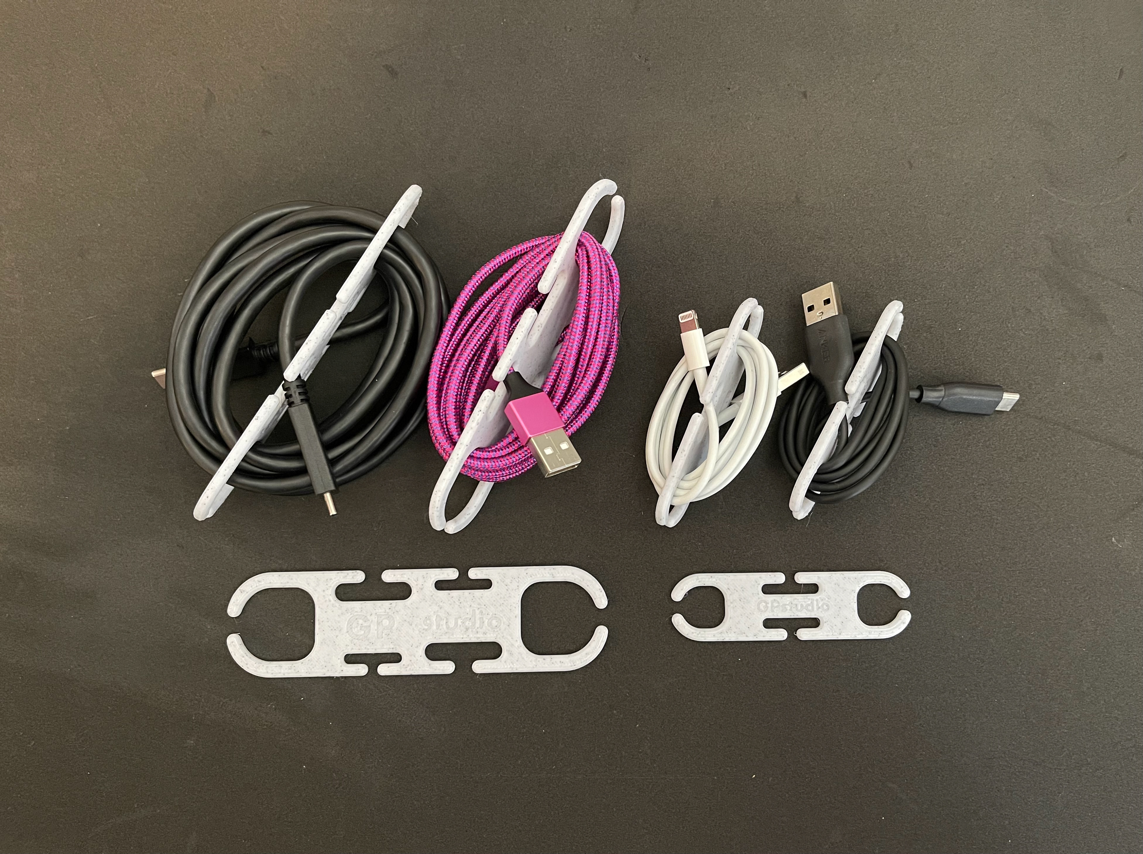 The core idea to this design are the profiles to keep the cable ends locked into place while wrapped. I worked to find the balance between a quick to print, sturdy, and thin to sore easily when not in use. With that said, these are designed more so for taking the mess of occasional use cables not ones used daily. There are two versions. The larger one was the original but I did find it was oversized when wrapping shorter cables.